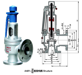 A48Y型適用于工作溫度≤350℃的蒸汽、空氣等介質(zhì)的設(shè)備和管路上,作為超壓保護裝置。
