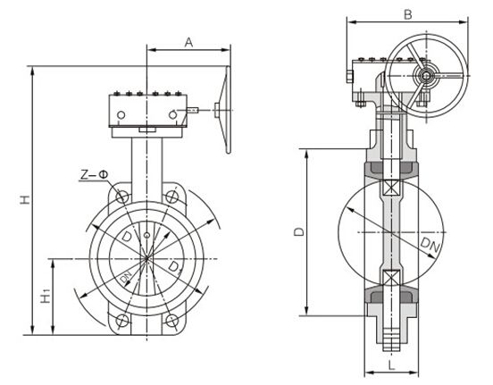 D371X蝸輪對夾式蝶閥主要外形尺寸