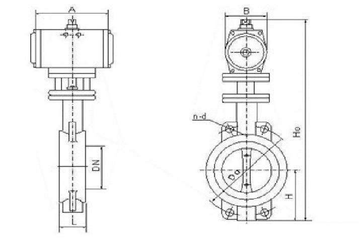 D671X/F氣動對夾式蝶閥主要外形尺寸