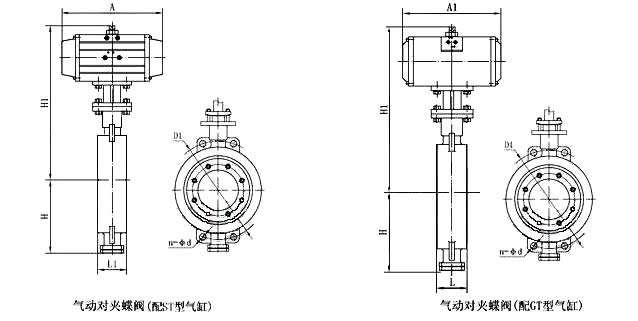【D671X/F不銹鋼氣動(dòng)蝶閥-主要外形尺寸】