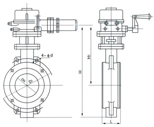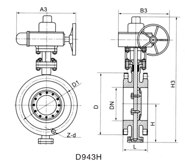 D943H/D973H電動硬密封蝶閥主要外形尺寸