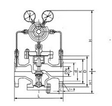 YK43X氣體減壓閥屬于先導(dǎo)活塞式減壓閥.由主閥和導(dǎo)閥兩部分組成.主閥主要由閥座、主閥盤、活塞、缸套、彈簧等零件組成。導(dǎo)閥主要由閥座、閥瓣、膜片、彈簧、調(diào)節(jié)彈簧等零件組成。通過(guò)調(diào)節(jié)調(diào)節(jié)彈簧壓力設(shè)定出口壓力,利用膜片傳感出口壓力變化,通過(guò)導(dǎo)閥啟閉驅(qū)動(dòng)活塞調(diào)節(jié)主閥節(jié)流部位過(guò)流面積的大小,實(shí)現(xiàn)減壓穩(wěn)壓功能。