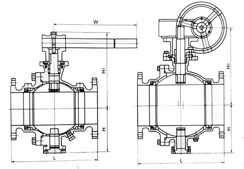 Q347F 蝸輪固定式法蘭球閥外形尺寸: