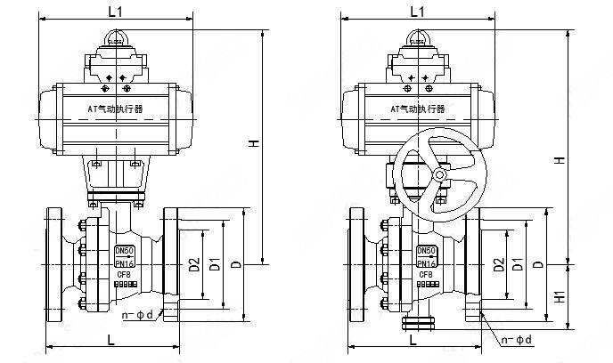 Q641F氣動(dòng)帶手輪球閥主要外形尺寸