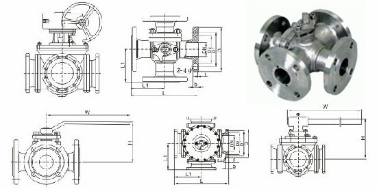 Q46F不銹鋼四通球閥主要外形尺寸